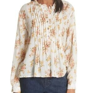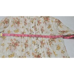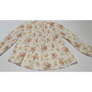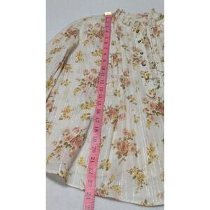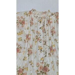La Vie Rebecca Taylor Ivory Metallic Floral Madeleine Blouse XS Dainty Ruffle