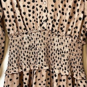 La Vie Rebecca Taylor Women's Long Sleeve Cherise Mini Dress. Size M Brown Black