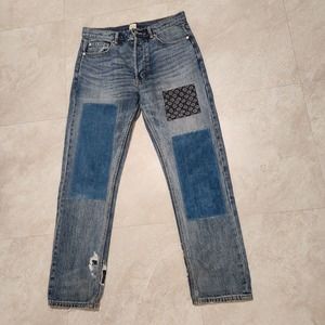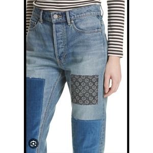 La Vie Rebecca Taylor Patched Velvet & Rigid Blue Denim Jeans Womens Size 27