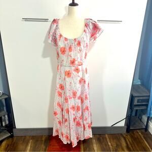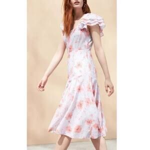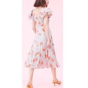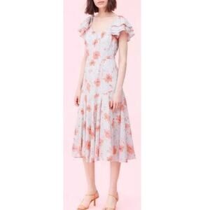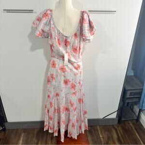 La Vie Rebecca Taylor Size XL Grey Pink Floral Ruffle Sleeve Midi Dress Coquette
