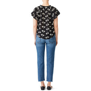 La Vie Rebecca Taylor Top Size XS Helene Black Floral Print Short Sleeve Blouse