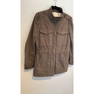 La Vie Rebecca Taylor Womens Military Jacket Faux Fur Lined Removable Lining LG.