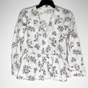 La Vie Rebecca Taylor Camille White Floral Print V-Neck Peplum Top Size S