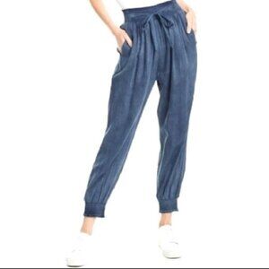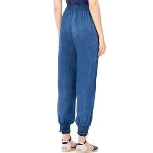 La Vie Rebecca Taylor Tissue Denim Chambray High Rise Tapered Smocked Hem Pant L