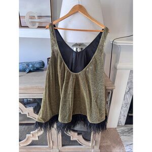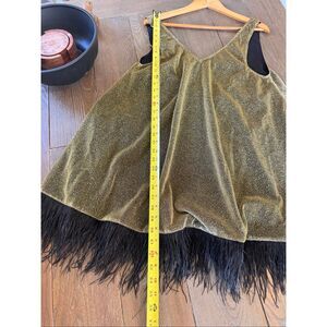 La Vie Style House Gold Dress With Black Feather Trim Size OS