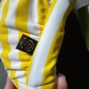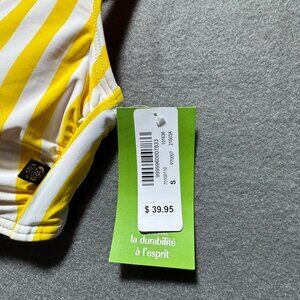 La Vie en Rose Aqua Yellow and White Striped Bikini Top Size Small Single Strap