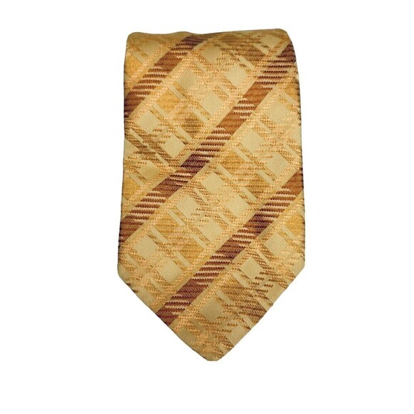 La Vita DiModa Tie Mens Beige Bronze Geo Stripe 100% Silk Necktie Jacquard Italy. Condition is "New with defects"