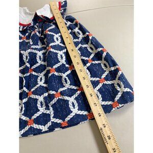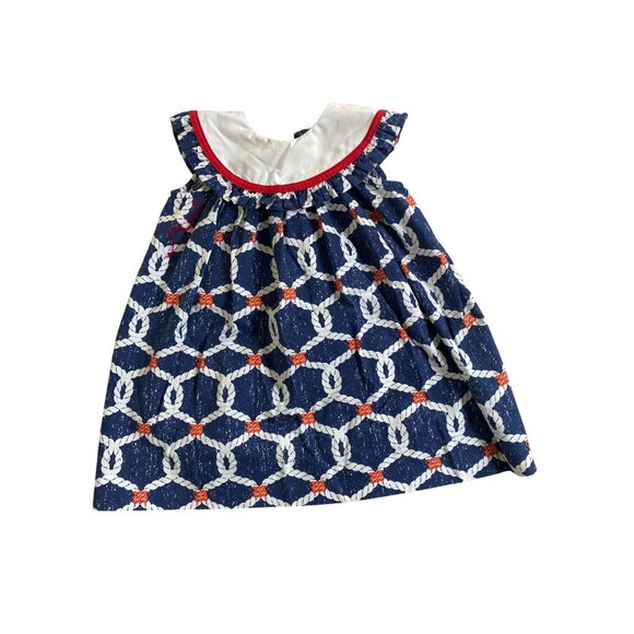 La Za Me Nautical Rope Print Baby Dress size 12 Month Sleeveless White Collar