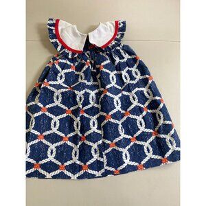 La Za Me Nautical Rope Print Baby Dress size 12M 100% Cotton Sleeveless White Collar