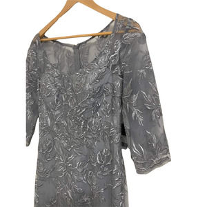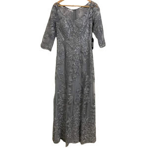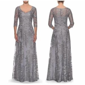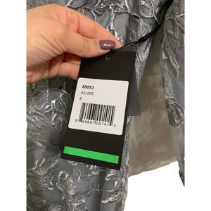 La femme Floral Embroidered Mesh A-Line Gown Silver Size 6 NWT $588 #28053