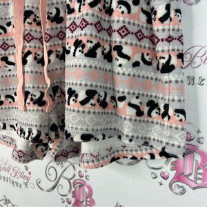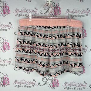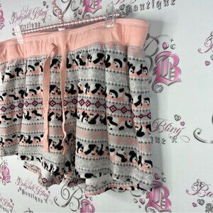 Cozy up in style with these sleep shorts. Featuring a charming pink and gray pattern, these shorts are perfect for a comfortable night's sleep.no size tag. Unsure of exact size. See measurement.