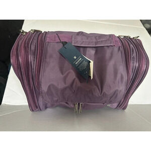 Top handle, 4 side pockets, inside has mesh pockets, clear zipper pocket hanging hook.