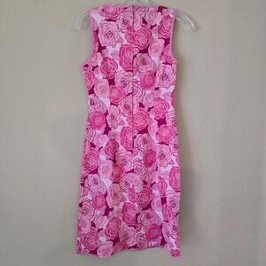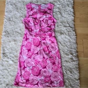 Chic midi dress with vibrant pink rose pattern. Sleeveless design for a stylish look. Ideal for any event.
