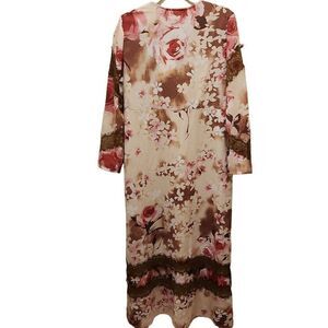 La Bellum Women's Brown & Pink Floral Print Wrap Shift Maxi Dress Size 12 NWT