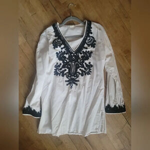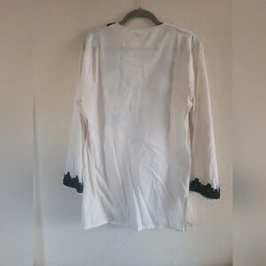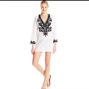 La Blanca Bali Garden Beach Pool Coverup, Cream/White, Black Embroidary,Size Med