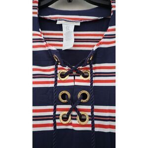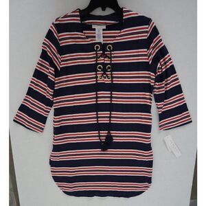 La Blanca LB3ZC55 Women Sz S Blue Sailor Stripe Lace-Up Swim Cover-Up Tunic