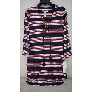 La Blanca LB3ZC55 Women Sz S Blue Sailor Stripe Lace-Up Swim Cover-Up Tunic
