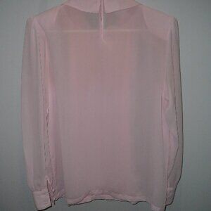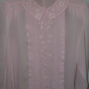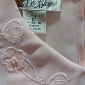 LaBlouse Pleated Long Sleeve Sheer Pink Floral Design Mini White Beads-Size 12