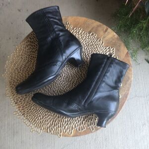 ❤️ these boots and wish they were my size. Gently loved, great condition only signs of wear are on soles. Super soft, supple, superior grade leather with soft lining and gorgeous construction with some lace/leather trim. 1.5 inch kitten heels, non-slip soles, size zippers. So comfortable you can wear all day and night! Love the vintage inspired design and their modern practicality. Who’s gonna strut these around the holidays!?!