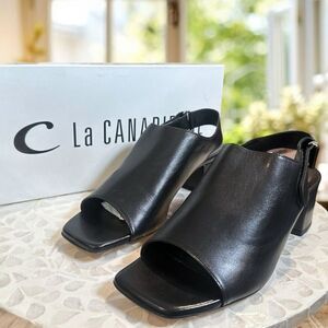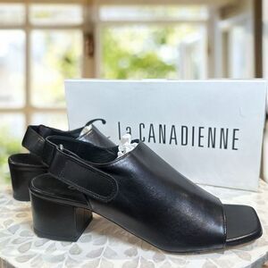 Don't be deceived, these heels are comfy as can be.Step into sophistication with the Women's Ricco Slingback Block Heel by La Canadienne. These chic heels feature a polished leather upper, breathable leather lining, and insole, all crafted in Italy. The adjustable hook-and-loop closure on the slingback strap ensures a perfect fit, while the low 2-inch chunky block heel and open square toe silhouette offer both style and comfort. Enjoy the durability of a leather outsole in a classic black shade, embodying effortless elegance for any occasion.
