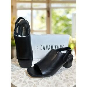 La Canadienne $475 Ricco Leather Slingback Block Heel Sandals Women's