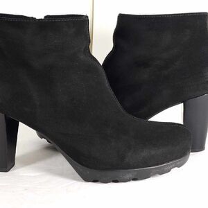 La Canadienne Women's US 7,5M Black Suede Platform Heeled Ankle Boot Booties.