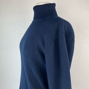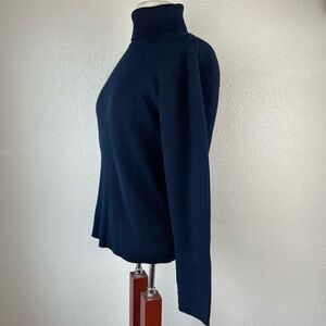 Classic black turtleneck sweater in excellent preowned condition. It measures 17 inches armpit to armpit laying flat and 23 inches in length from shoulder to hem.