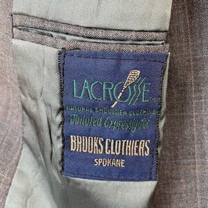 Stylish dress jacket and slacks by LaCrosse tailors. The jacket measures 22 inches across the chest (like a 44R) and 33 inches in length from shoulder to hem. The slacks measure 19 inches at the waist laying flat and have a 26 inch inseam.