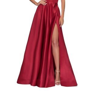 La Femme Strappy Back Satin Ballgown in Deep Red.Size 2