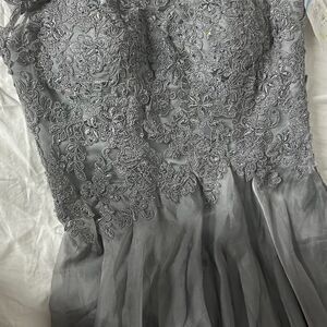 La Femme Women's 2 Regular Size Embellished A-Line Gown Dress, Gray, NwoT