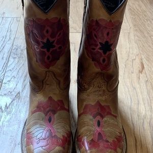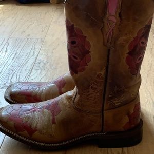 This is a pair of limited edition breast cancer awareness boots with a distressed look. I wore them once but never outside.