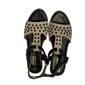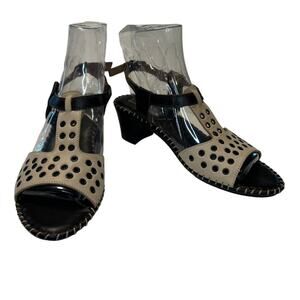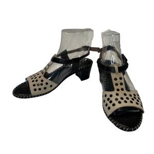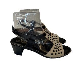 LaPlume Leather Heel Sandals w/ Grommet Detail Ankle Strap Open Toe Sz 41/10.5 NWOT
