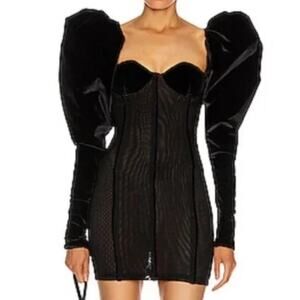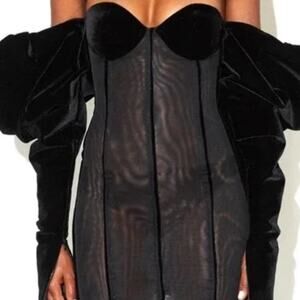 LaQuan Smith Off Shoulder Puff Sleeve Dress in Black Size Medium / Large