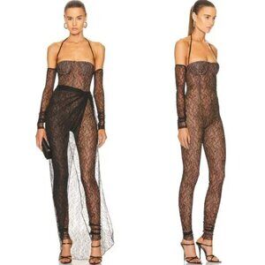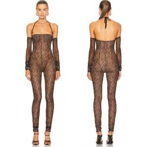 LaQuan Smith Sheer Lace Halterneck Jumpsuit NWT