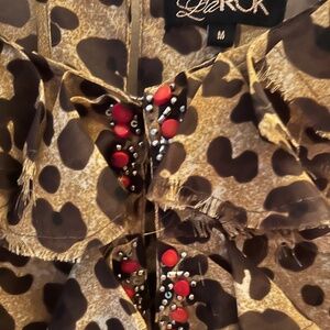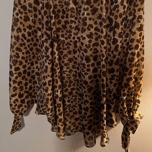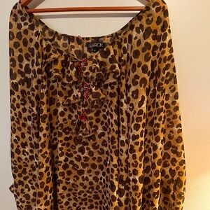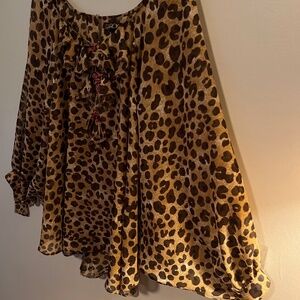 LaROK Leopard Embellished Ruffled V Neckline Tunic - Size M