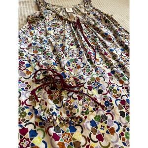 LaRok Colorful Geometric Pattern Sleeveless Tunic/Tank W/ Ruffled Details Small