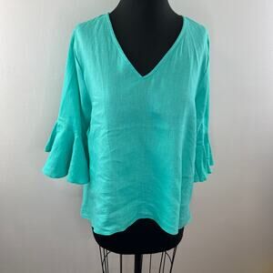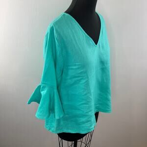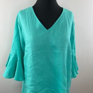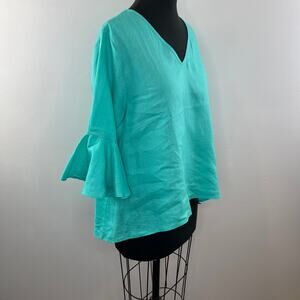 LaRoque Blue OS Tunic Top Casual V-Neck 3/4 Bell Sleeve Pullover Regular Fit