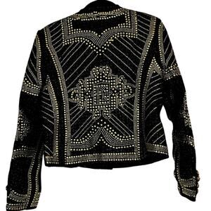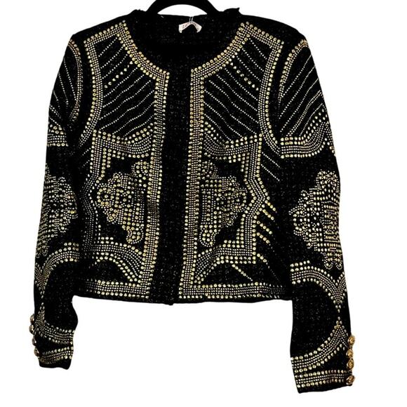 La’Ros – Embellished Studded Tweed Jacket (Black/Gold) – S