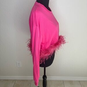 Elevate your wardrobe with this stunning Women's Feather Hem Trim Long Sleeve Sweater, brand new with tags.