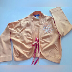 LaRue 39 Silk cropped bolero sz 10. Sequenced flower & ribbon closure in orange