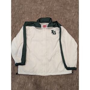LaSalle University Men's Windbreaker Sz XL. White/Green. Rain Hood folded in collar. NWT.