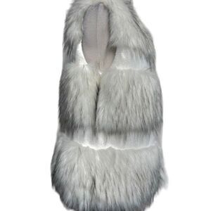 LaSeine White 3 Tier Fax Fur Vest Size Small