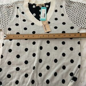 La Serein Polka Dot V-Neck Sweater - Black and White size extra small