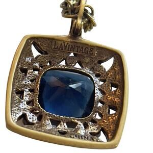 LaVINTAGE Blue Crystal Rhinestone Square Goldtone Necklace La Vintage