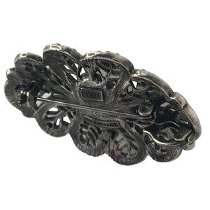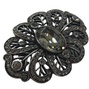 LaVintage Silver Tone Smoky Rhinestone Oval Victorian Style Brooch Pendant, M123