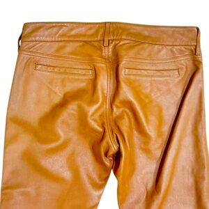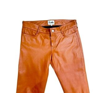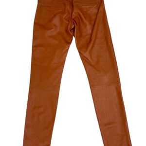 These LAB 100% lamb leather caramel brown skinny pants feature a sleek, slim fit. Lined. Faux back pockets. Mid rise. Like new condition.