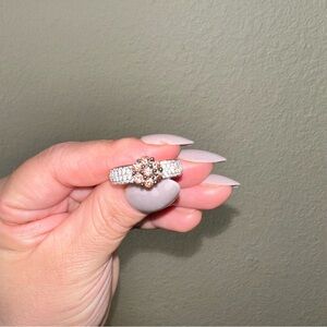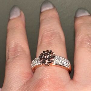 This stunning ring features a captivating cluster of brown champagne diamonds and white diamond band all set on a luxurious gold. The intricate design exudes a floral-inspired elegance, making it a standout piece in any jewelry collection.