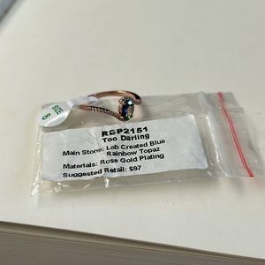 Main stone: lab created blue rainbow topaz