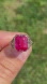 This stunning piece, known as The Scarlet Grace, features a captivating emerald cut lab created ruby at its center. The bold, vivid red gemstone is prong set in an intricately detailed filigree mounting, its delicate latticework and subtle milgrain edges lending an air of vintage sophistication. The ring is crafted in 18 karat white gold and is currently a finger size 6.