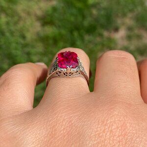 Lab Created Ruby Filigree Ring in White Gold